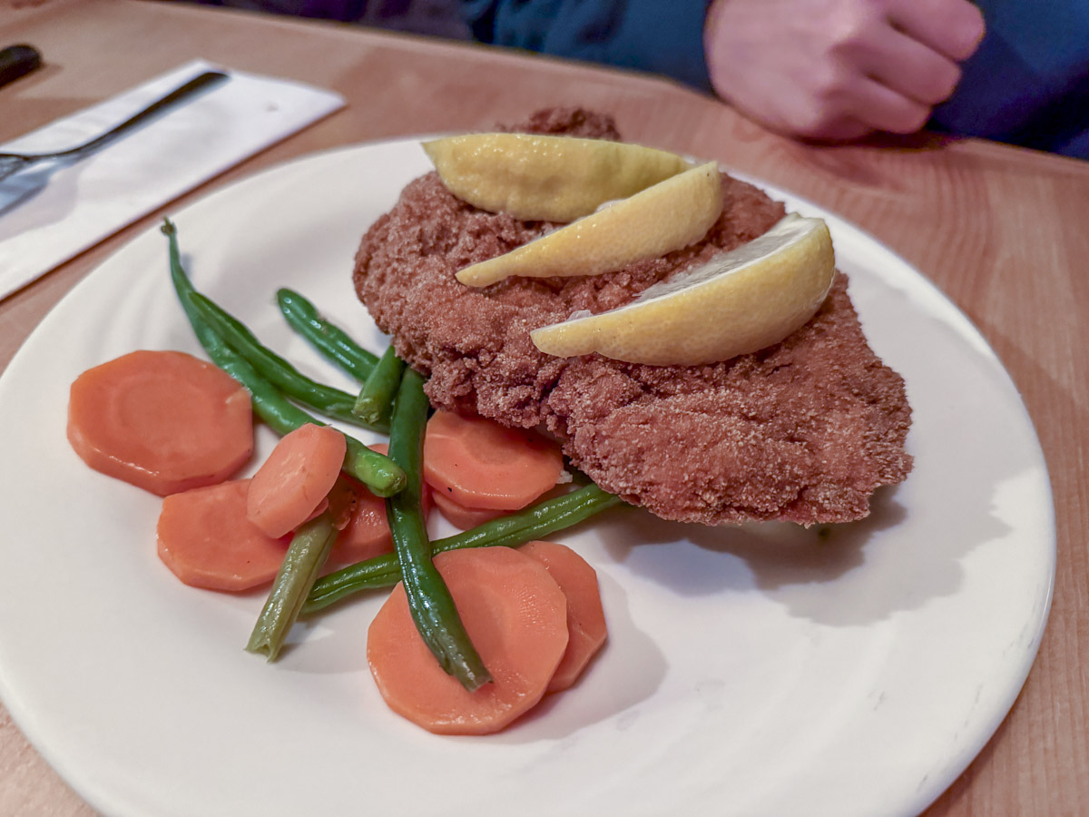 The food backs it up. I had the chicken schnitzel, and my husband ordered the sausage dish with sauerkraut, steamed veggies and mashed potatoes. You could taste the difference immediately – honest, homemade cooking with no prepackaged shortcuts to be found. They also have an exhaustive international beer list, a rare treat in this town.